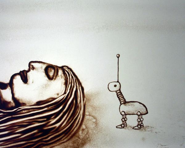 Voici une sélection de dessins sur sable de David Myriam réalisés entre 2004 et 2009. Ces créations sont issues de films d’animations, de spectacles et performances de dessin en direct ou d’illustrations.