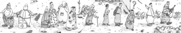 Cette bande dessinée satirique de 33 pages, créée entre 1995 et 2000, veut dénoncer l’absurdité de toutes les guerres, ainsi que la violence inconsciente ou délibérée de ceux qui s’en abreuvent : médias spectacles, touristes charognards et marchands de morts.